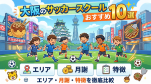 大阪で子どものサッカースクールを探している方へ。セレッソ大阪・ガンバ大阪のJクラブ直営スクールからドリブル特化型・風間イズム系まで、地域密着型10校の月謝・対象年齢・特徴を一覧比較。元アトレティコ育成出身の筆者が解説。
