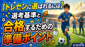 トレセン(地区・都道府県・ナショナル)の仕組みと選考で見られる5つのポイント(技術力・判断力・フィジカル・コミュニケーション・メンタリティ)を徹底解説。スペインやドイツのセレクション基準との比較も交え、選ばれる選手の共通点と具体的な準備方法を紹介。